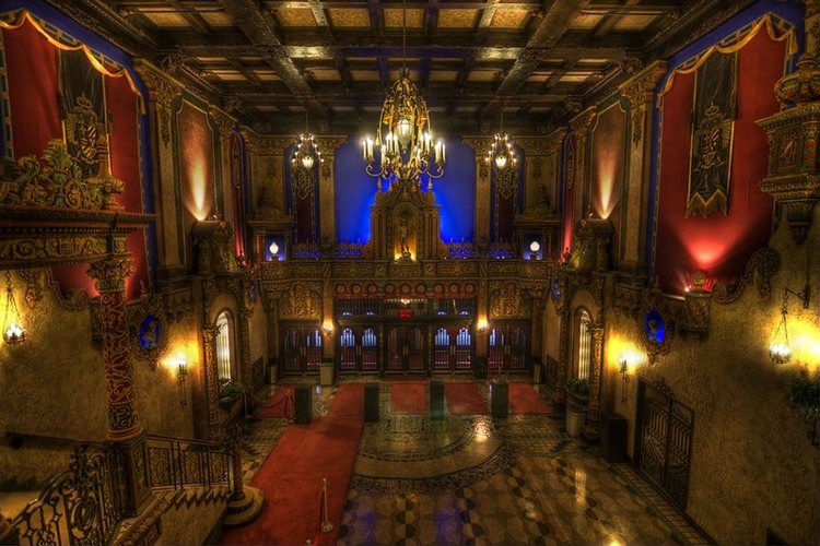 This theater first opened in 1928 as the Lowe's Theater and is believed to be haunted by a number of ghosts. A faceless woman wearing 1940s clothing has been spotted climbing the stairs in the mezzanine lobby, a man in 1930s attire in the balcony area, who has vanished after being approached. The sound of a young child giggling has been heard in the bathroom beyond the Ladies' Parlor, the ghost of a projectionist is said to haunt the projection booth after having a heart attack on the job, and Ferdinand Frisch, an employee who died in the building in 1965 is also said to appear throughout the building.
